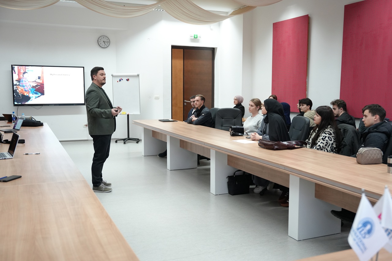 The event brought together students interested in artificial intelligence, entrepreneurship, and the future of work. During the lecture, Mr. Malkoč discussed how AI is transforming industries, reshaping business models, and redefining the global job market. He emphasized that future professionals will need to be adaptable, capable of working across disciplines, and able to design and execute solutions end-to-end.